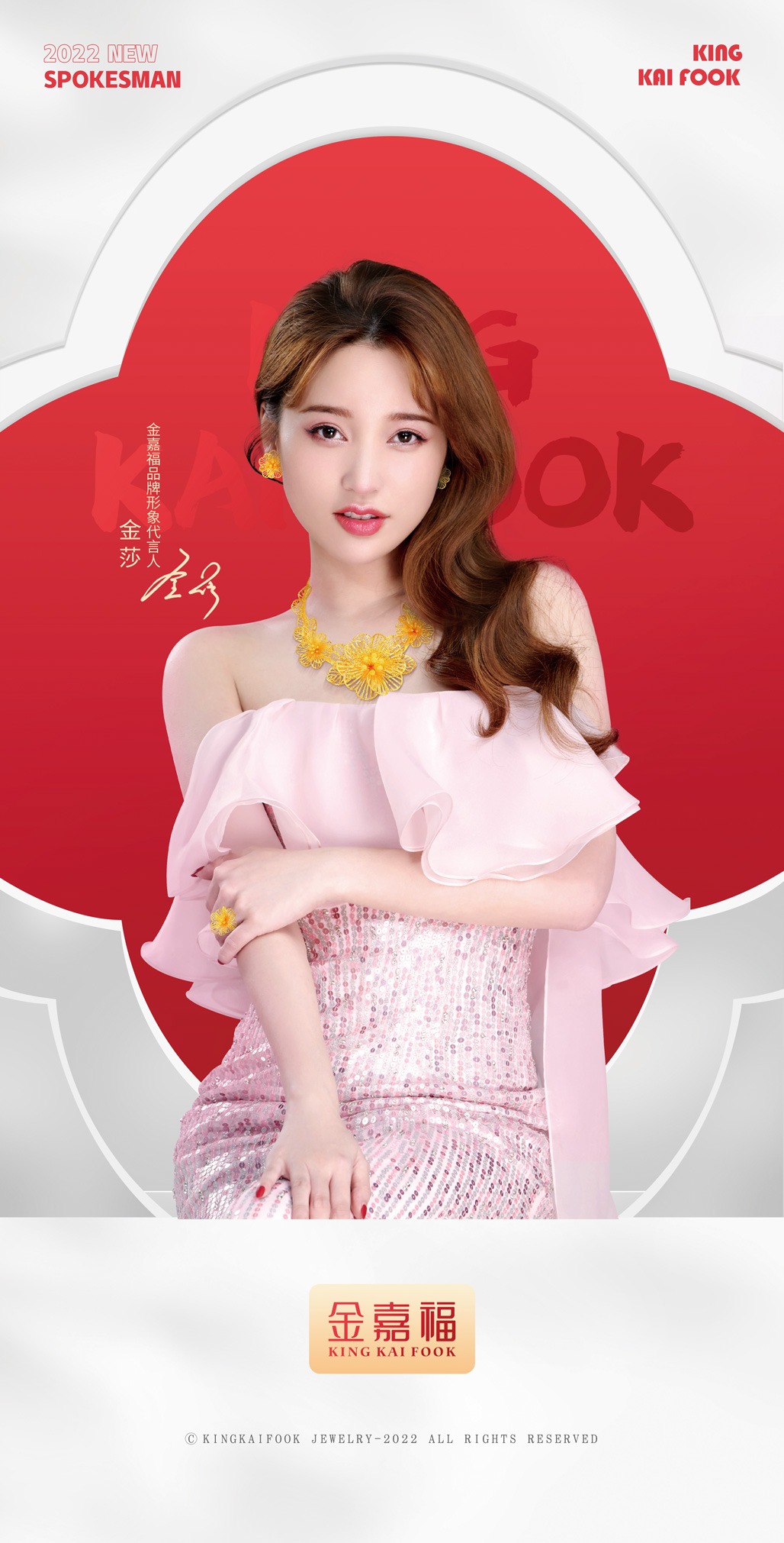 2022年5月20日,金嘉福珠寶正式官宣「金莎」(明星經(jīng)紀(jì)公司)為全新品牌代言人。