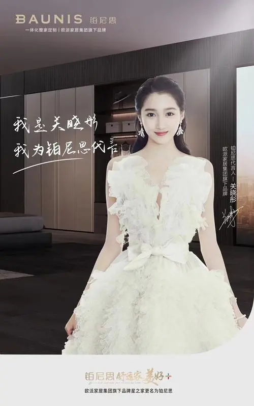 鉑尼思邀請關(guān)曉彤(明星代言公司)正式成為歐派家居集團旗下品牌鉑尼思代言人,與關(guān)曉彤?dāng)y手同行,開啟一體化整家定制新時代。