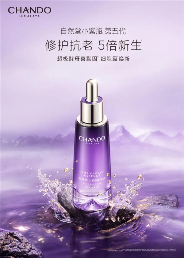 作為自然堂推出的明星產(chǎn)品,小紫瓶第5代于今年7月推出,主打由伽藍(lán)集團(tuán)歷經(jīng)21年科研沉淀、近10年酵母研究的獨家中國成分——超極酵母喜默因™。自然堂品牌方介紹到,喜默因是來自于 “世界第三極”喜馬拉雅地帶的酵母菌種,為了對抗高海拔(3355米),高紫外線,極寒(-40℃),缺氧環(huán)境,喜默因有著超強(qiáng)的自我修護(hù)力,并且能夠刺激基底層細(xì)胞的增殖、抑制皮膚老化。