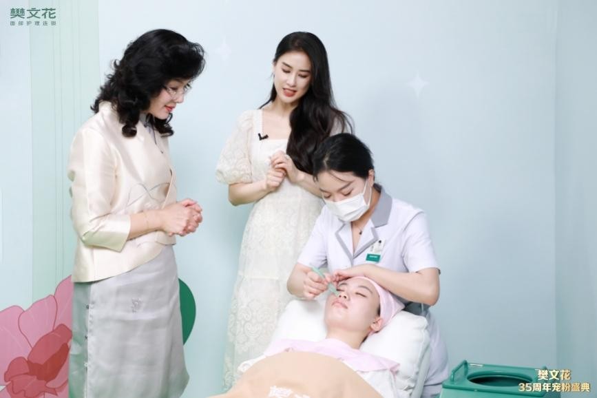 在“樊文花35周年寵粉盛典”專場直播中,樊文花品牌代言人黃圣依和樊文花的品牌創(chuàng)始人樊文花女士一起分享自己的面部護(hù)理心得,同時慶祝樊文花品牌的35歲生日。“我平時工作熬夜、皮膚暗沉、狀態(tài)不好的時候,就會去做一個面部護(hù)理,專業(yè)的手法搭配樊文花的精華液,能夠讓我明顯看到皮膚的提亮效果。”直播中黃圣依分享了在樊文花的護(hù)理體驗(yàn),同時也表示“樊文花在全國有5000家店,所以無論在哪個城市,都可以去享受到樊文花的服務(wù),這點(diǎn)是我非常喜歡的。”