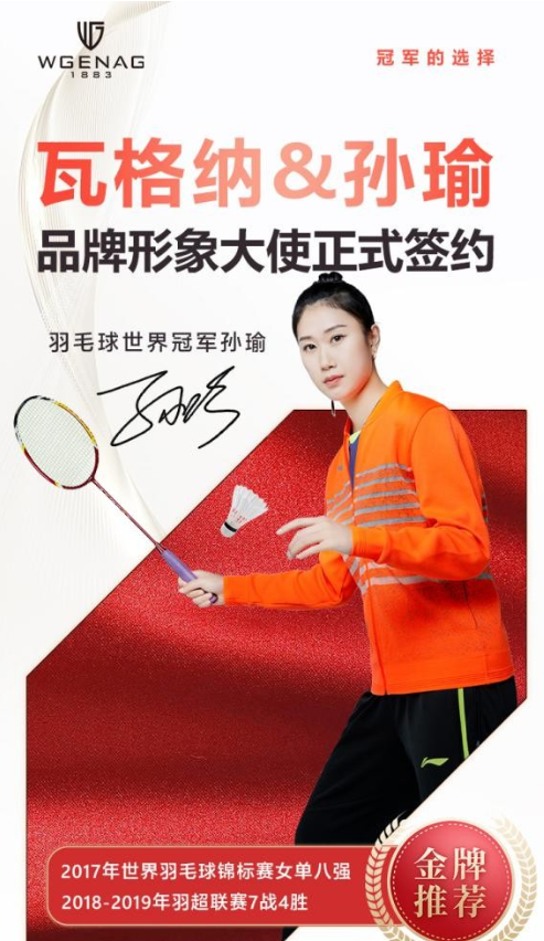 近日,瓦格納品牌成功簽約羽毛球世界冠軍孫瑜(明星代言公司)成為品牌形象大使,攜手奮進(jìn),冠軍品質(zhì)共創(chuàng)輝煌。