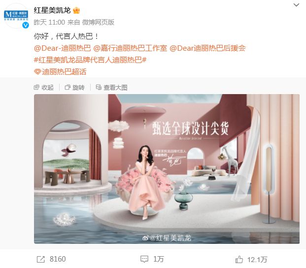 紅星美凱龍品牌形象全新升級!家居零售巨頭紅星美凱龍通過官方渠道宣布了全新品牌形象代言人——迪麗熱巴(明星代言公司)。