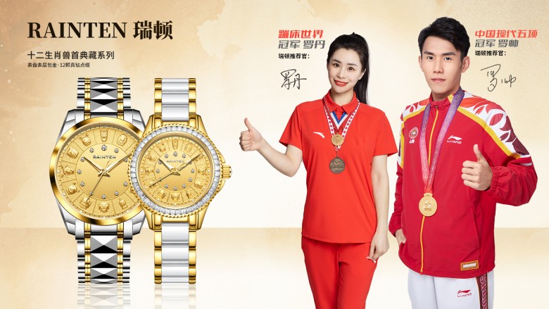 2023年9月1日機械腕表品牌RAINTEN瑞頓正式官宣,簽約蹦床世界冠軍羅丹(明星代言公司)與中國現(xiàn)代五項冠軍羅帥。