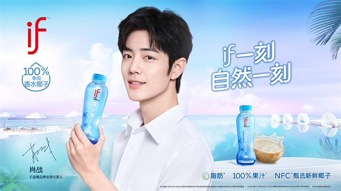 2024年6月11日,中國線上暢銷椰子水品牌if官宣肖戰(zhàn)(明星代言公司)正式加入if大家庭,成為其全球品牌代言人,并推出一系列椰子飲品,包括if100%椰子水、if香水椰子水、if椰奶(芒果糯米味、原味、巧克力口味)。此次合作不僅彰顯了肖戰(zhàn)在全球范圍內(nèi)的非凡影響力,也標(biāo)志著if品牌在全球市場戰(zhàn)略中的又一里程碑式邁進(jìn)。