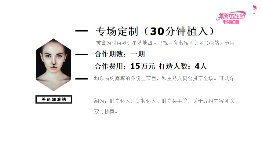 《美麗加油站》是一檔具有國(guó)際化性質(zhì)的生活服務(wù)類(lèi)高端時(shí)尚節(jié)目。節(jié)目每一期一個(gè)時(shí)尚主題,邀請(qǐng)知名演員,設(shè)計(jì)師,時(shí)尚達(dá)人,著名護(hù)膚美容師及網(wǎng)紅等和主持人共同探討,分享。。。