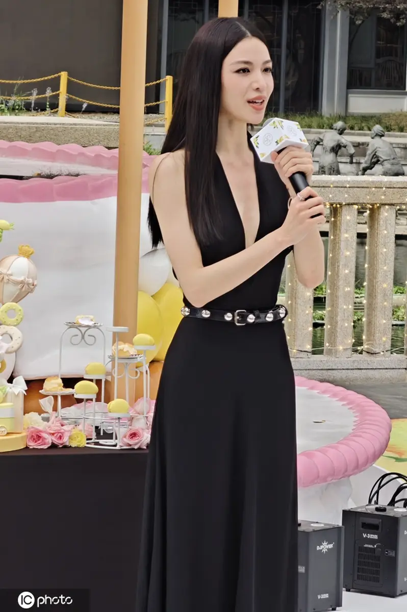 鐘楚曦出席武漢SKP一周年慶典活動(dòng) 黑色深V長(zhǎng)裙時(shí)尚大氣