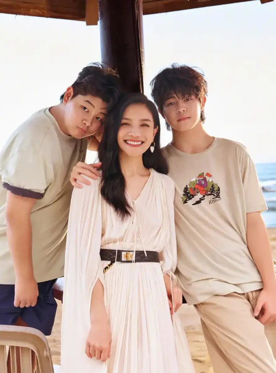 胡可與兩個(gè)兒子貼貼合影,畫面溫馨又治愈。