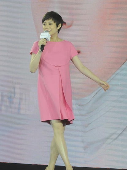 2014年02月19日上海,19日,孫儷粉裙出席活動(dòng),剛剛宣布再次懷孕的孫儷不懼危險(xiǎn)踩高跟鞋亮相。