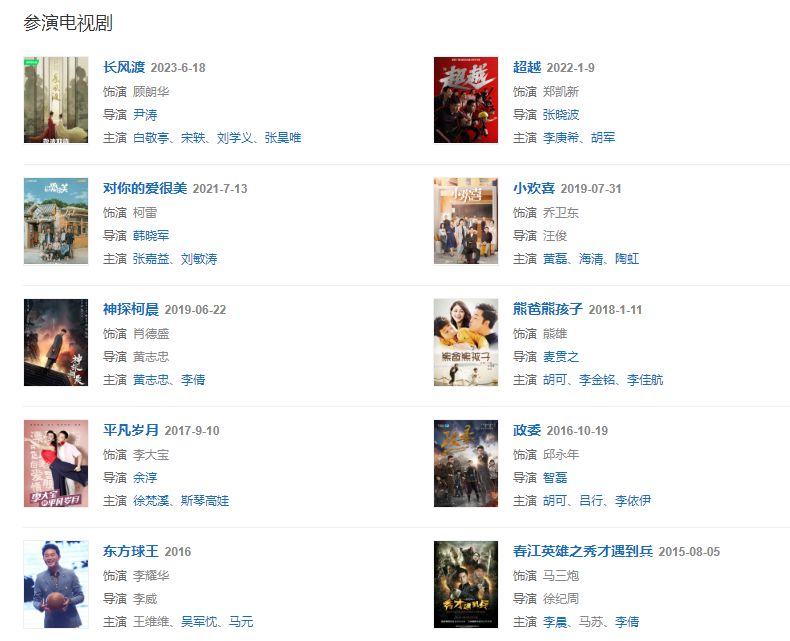 代表作品:武林外傳、炊事班的故事、血戰(zhàn)長(zhǎng)空、結(jié)婚前規(guī)則、青盲、滲透、秀才遇到兵、甜蜜蜜、平凡歲月