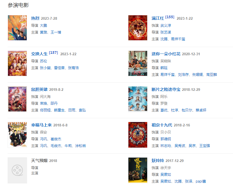 代表作品:五環(huán)之歌、擾民了您、我忍不了、煎餅俠、從你的全世界路過、大鬧天竺、瘋岳撬佳人、祖宗十九代、鼠膽英雄、妖鈴鈴