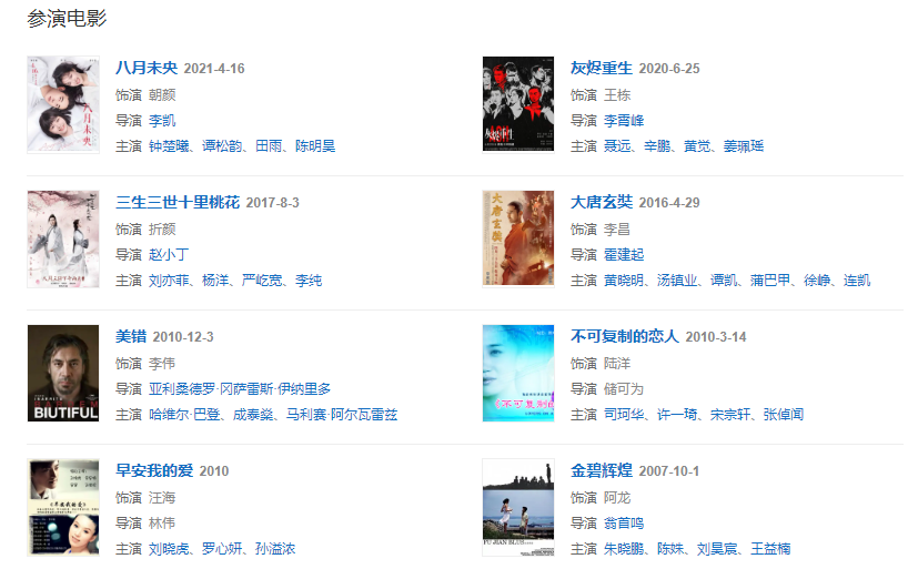 2007年,出演個(gè)人首部電影《金碧輝煌》;同年,出演民國(guó)情感劇《夢(mèng)幻天堂》。