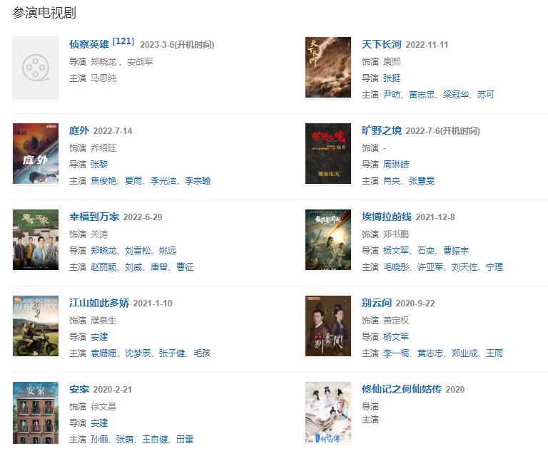 代表作品:三國(guó)、穆桂英掛帥、美人心計(jì)、錦繡未央、鶴唳華亭、安家、X女特工、克拉戀人、封神演義、天下長(zhǎng)河