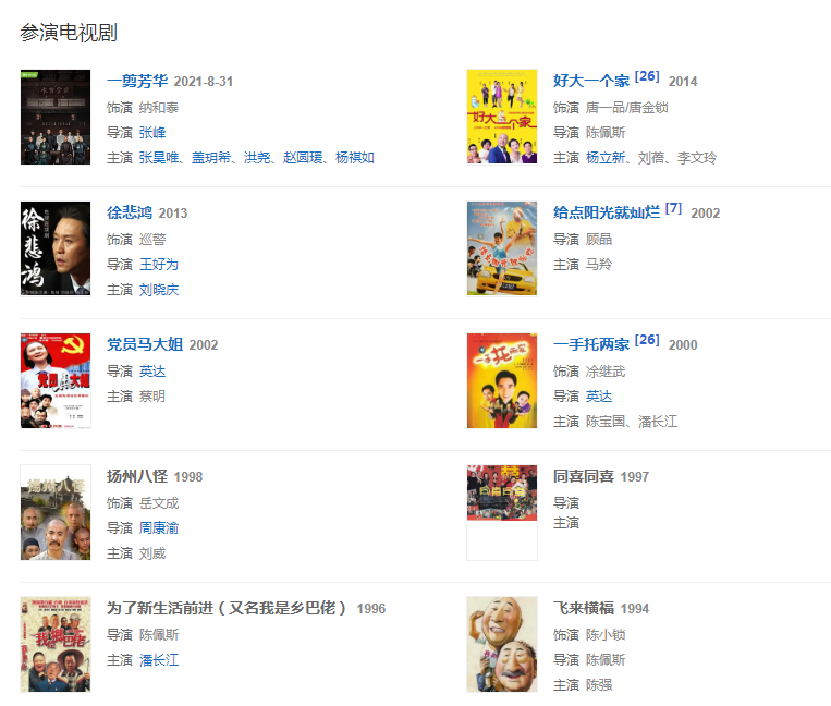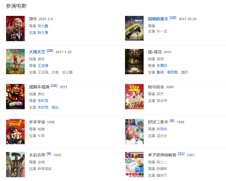 代表作品:胡椒面、主角與配角、托兒、二子開(kāi)店