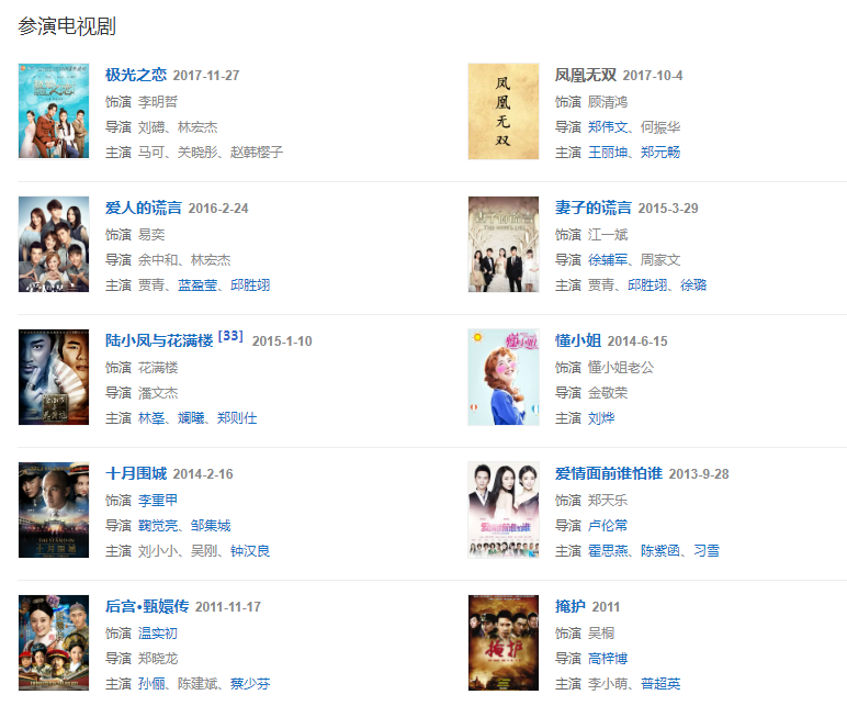 代表作品:后宮甄嬛傳、十月圍城、愛情面前誰怕誰