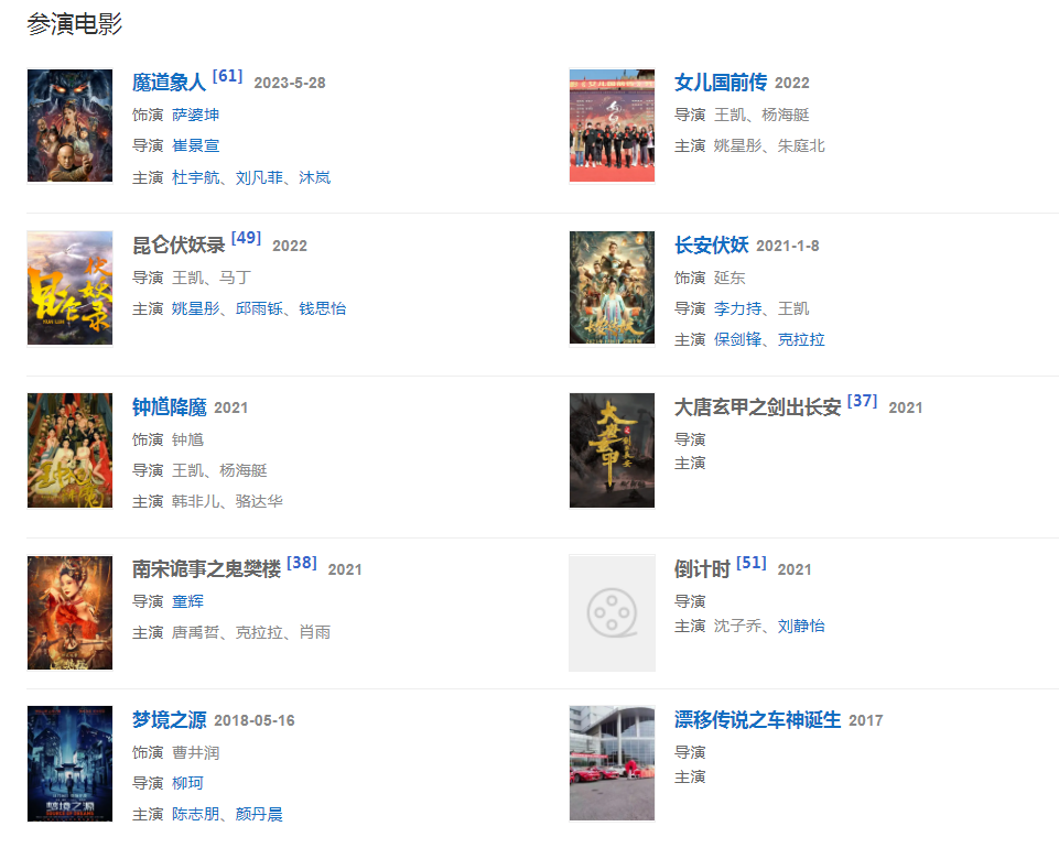 2020年9月22日,主演的電影《鐘馗降魔》在橫店開機,在片中飾演鐘馗;10月8日,主演的電影《大明烽火》在橫店開機,在片中飾演石亨。