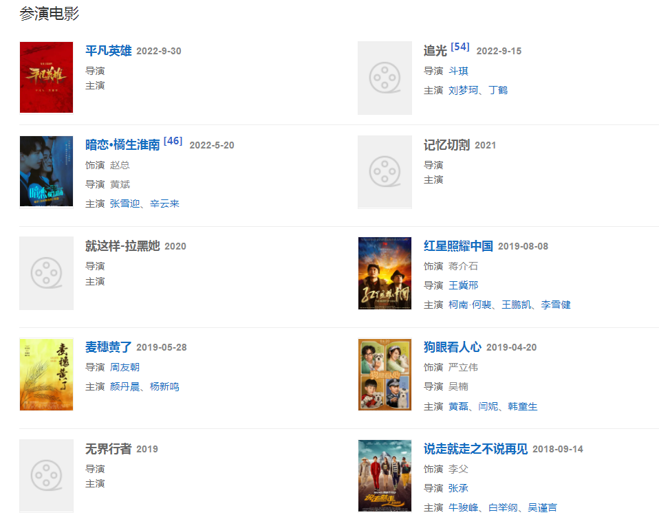 2022年6月,與張雪迎、辛云來聯(lián)合參演電影《暗戀·橘生淮南》;1月,主演的現(xiàn)實(shí)主義題材電影《您好,北京》宣布定檔4月30日。
