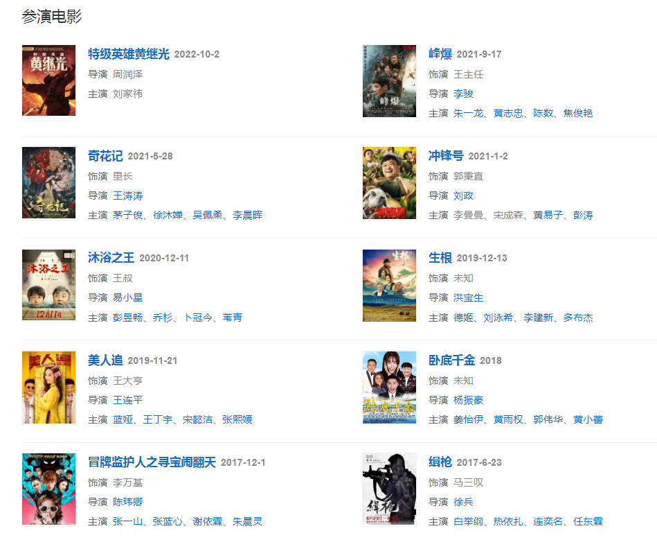代表作品:炊事班的故事、派出所的故事、老威的X計劃、皮五傳奇