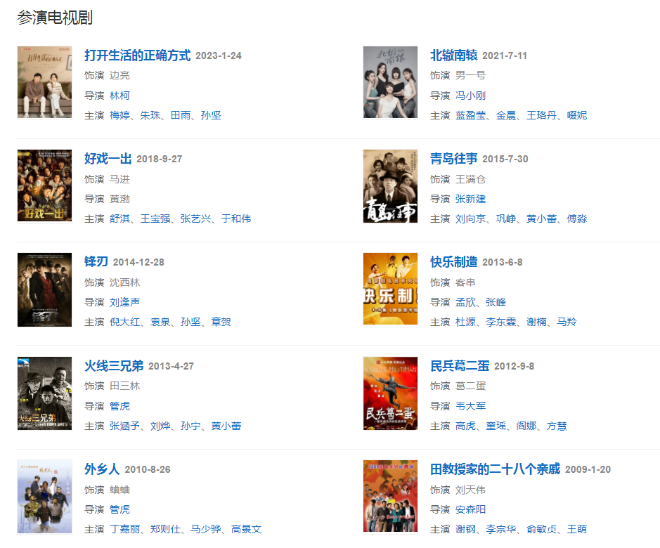 代表作品:奪冠、冰之下、一出好戲、瘋狂的外星人、斗牛、殺生、瘋狂的石頭、心花路放、親愛的、民兵葛二蛋、鋒刃、泰囧、正義之道、臨時演員、男人好難、這就是命
