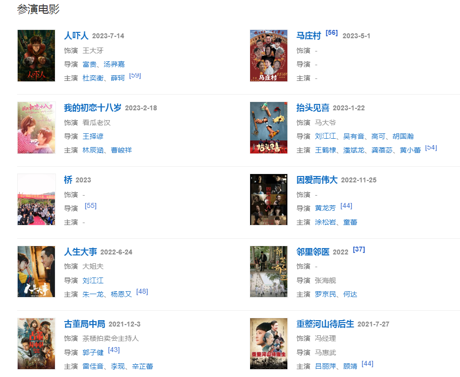 2021年1月,出演玄幻電影《奇門(mén)飛甲》,飾演老瞎子 ;5月20日,主演的電影《夢(mèng)境俏佳人》定檔;參演電視劇《上頭姐妹》;12月3日參演的電影《古董局中局》上映。
