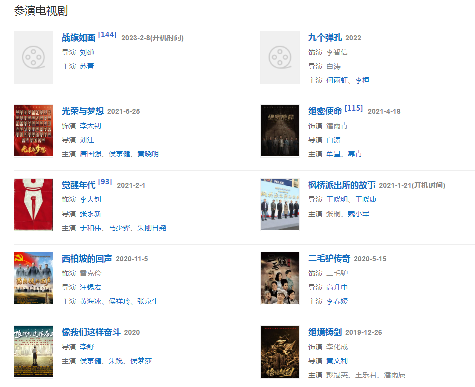 代表作品:亮劍、絕命后衛(wèi)師、覺醒年代、歡天喜地七仙女、絕密使命