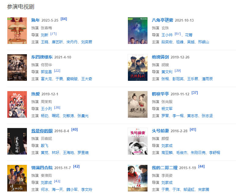代表作品:十七歲不哭、姐妹、少年天子、初戀的故事、黃金時代、親愛的、頤和園