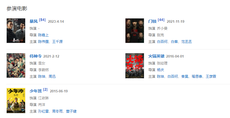 2016年7月,主演都市情感劇《致青春》 ;7月,主演古裝劇《回到明朝當(dāng)王爺之楊凌傳》。