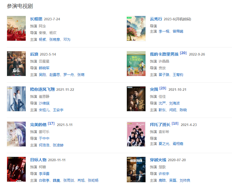 2023年5月14日,主演的電視劇《后浪》在優(yōu)酷全網(wǎng)獨(dú)播。6月5日,參演電視劇《云秀行》開機(jī)。7月24日,參演愛(ài)情奇幻古裝劇《長(zhǎng)相思》播出,在劇中飾演阿念 。