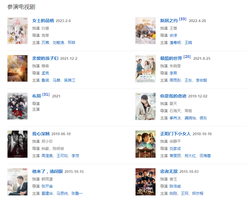 2021年8月25日,《最酷的世界》播出,在劇中飾演朱曉雯;12月2日,主演的年代情感大劇《親愛的孩子們》播出;參演電視劇《布局》。