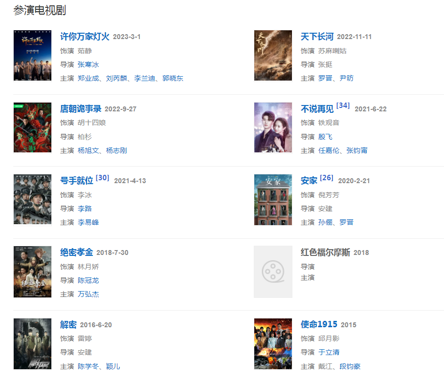 代表作品:孝莊秘史、貞觀長歌、誓言今生、幸福從天而降