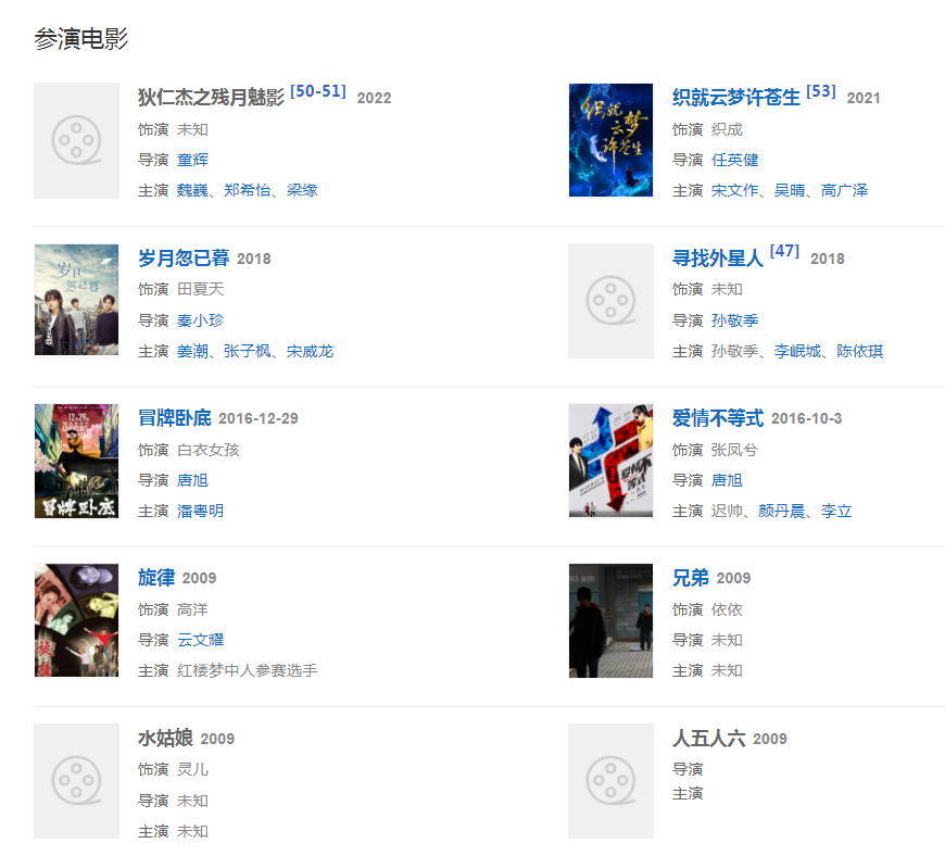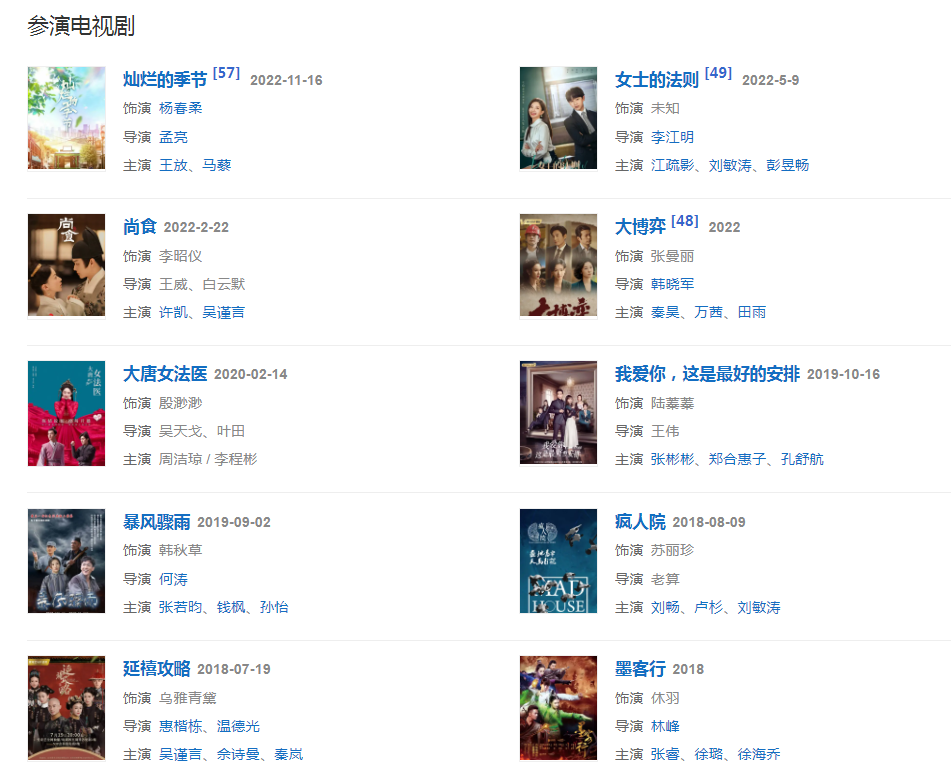 2020214日,參演的古裝懸疑愛(ài)情勵(lì)志劇《大唐女法醫(yī)》播出;同年,主演古裝玄幻片《織就云夢(mèng)許蒼生》  。