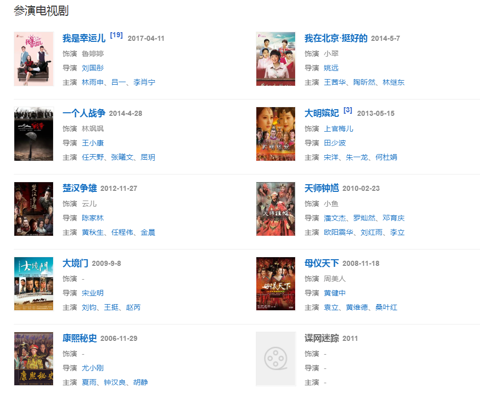 2017411日,參演的電視劇《我是幸運(yùn)兒》播出,在劇中飾演魯婷婷。