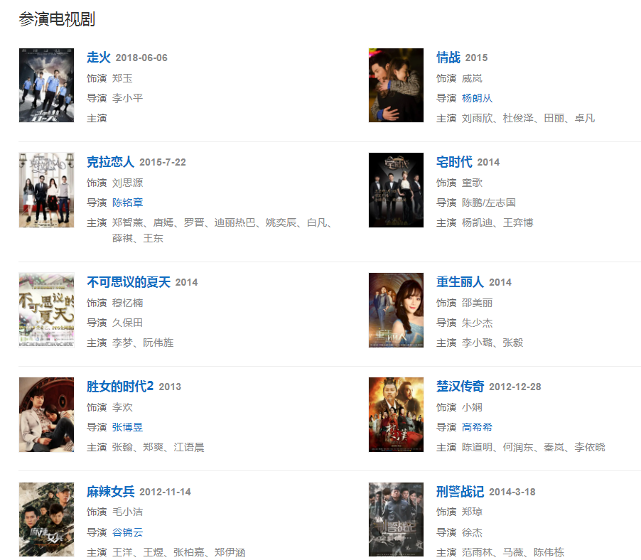 代表作品:《新白發(fā)魔女傳》、《刑警戰(zhàn)記》、《麻辣女兵》、《宅時代》《克拉戀人》《重生麗人》