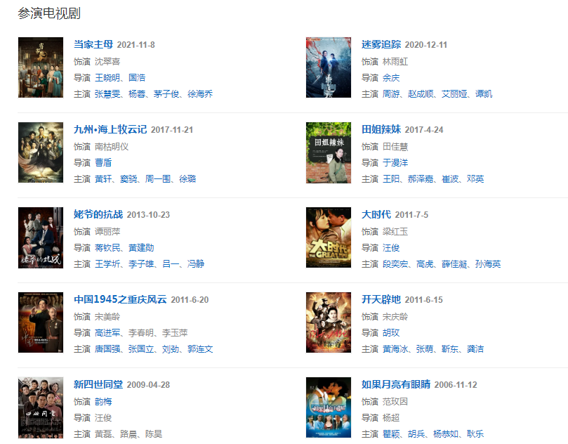 代表作品:喬家大院、一個(gè)勺子、青河絕戀、蒼天有淚、半生緣、還珠格格第三部:天上人間、射雕英雄傳、姐姐詞典、英雄鄭成功、風(fēng)云