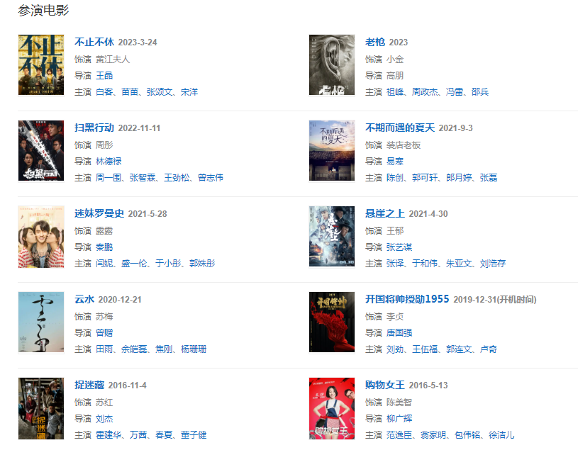 2021年,主演的諜戰(zhàn)題材電影《懸崖之上》上映;同年,主演的家庭倫理劇《小敏家》播出。