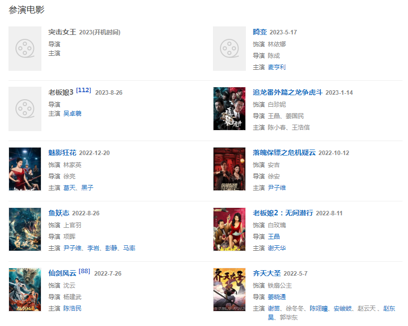 代表作品:將愛情進(jìn)行到底、澳門風(fēng)云3、余罪、追龍、大嫂、紋身:西部縱橫
