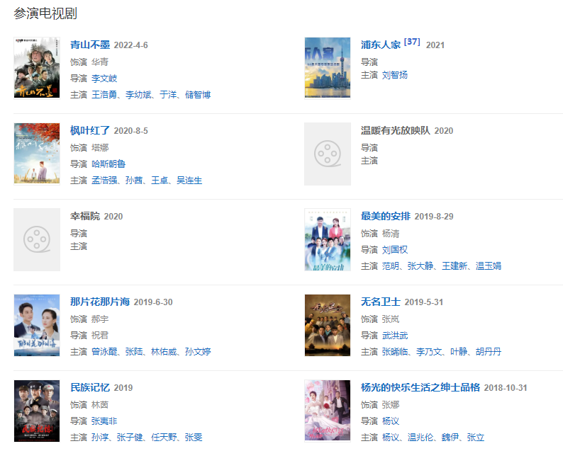 2020年,領(lǐng)銜主演電視連續(xù)劇《不負人民》。202246日,搭檔王洛勇、李幼斌領(lǐng)銜主演的大型現(xiàn)代林業(yè)建設(shè)題材電視劇《青山不墨》在央視一套播出  。