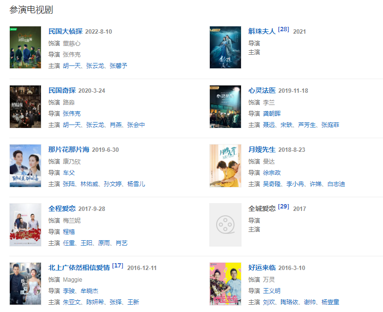 代表作品:婚姻保衛(wèi)戰(zhàn)、云上的誘惑、戰(zhàn)火四千金、北京青年、新戀愛時(shí)代、敢愛