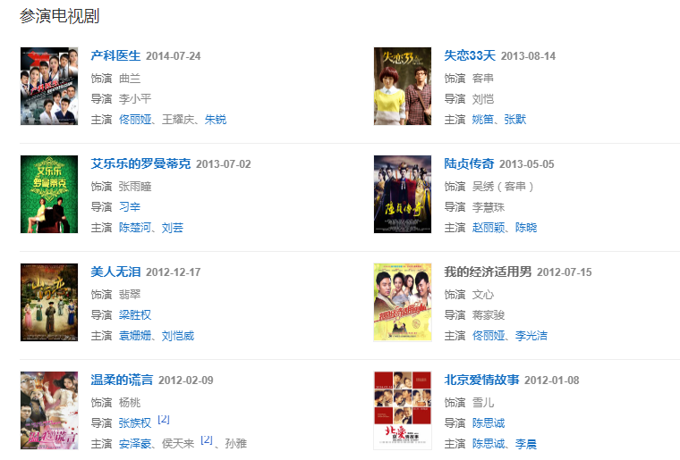 2012年在電視劇《北京愛情故事》中飾演“雪兒”一角;
