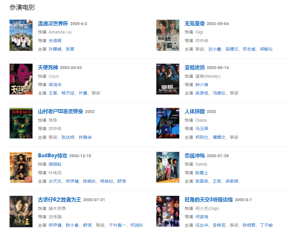 代表作品:古惑仔之人在江湖、97家有喜事、山村老尸、倚天屠龍記、金枝欲孽、珠光寶氣、如果真的戀愛