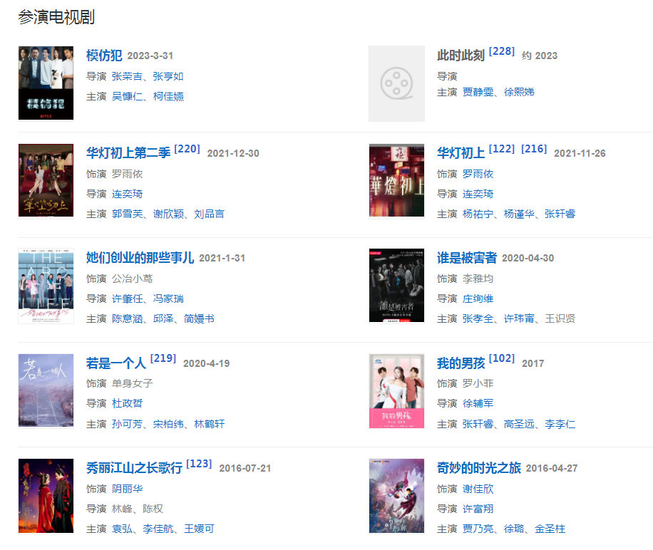 代表作品:還珠格格、情深深雨濛濛、男才女貌、半生緣、美人心計(jì)、16個(gè)夏天、華燈初上