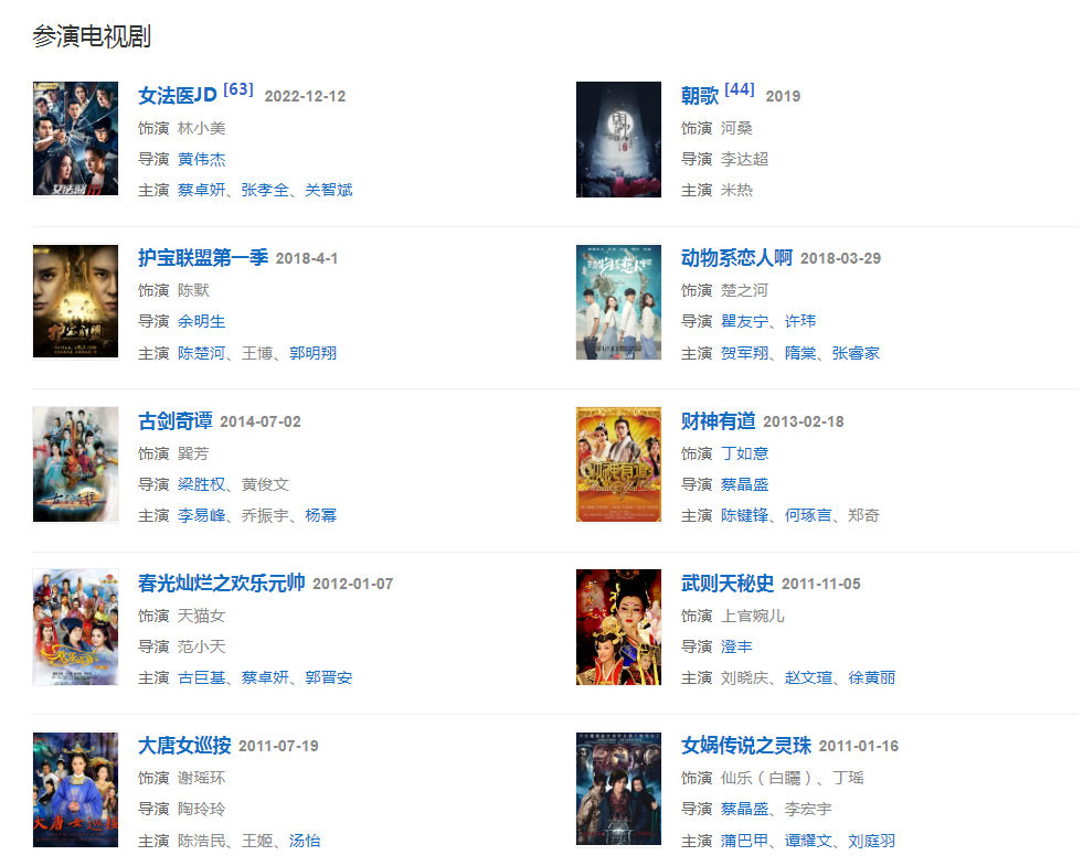 代表作品:女媧傳說之靈珠、雪山飛狐、古劍奇譚、前度、千機(jī)變、公主復(fù)仇記、大唐女巡按、浣花洗劍錄
