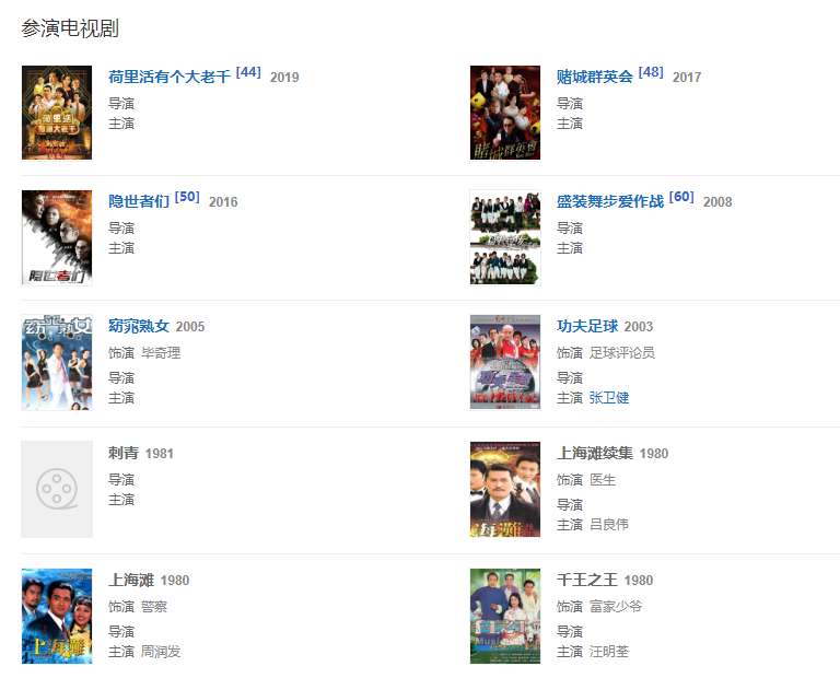 代表作品:鹿鼎記、楚留香、精裝追女仔、我至叻