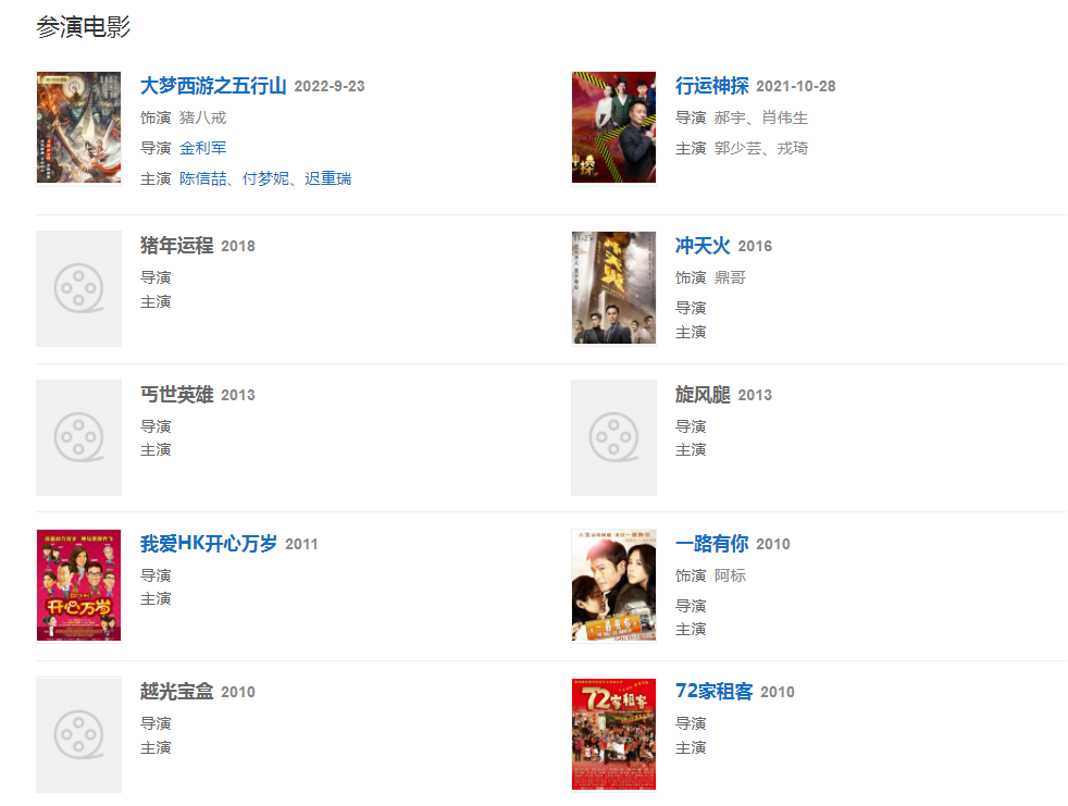 代表作品:西游記、巾幗梟雄、畢打自己人、大太監(jiān)、公公出宮、巾幗梟雄之義海豪情、梟雄